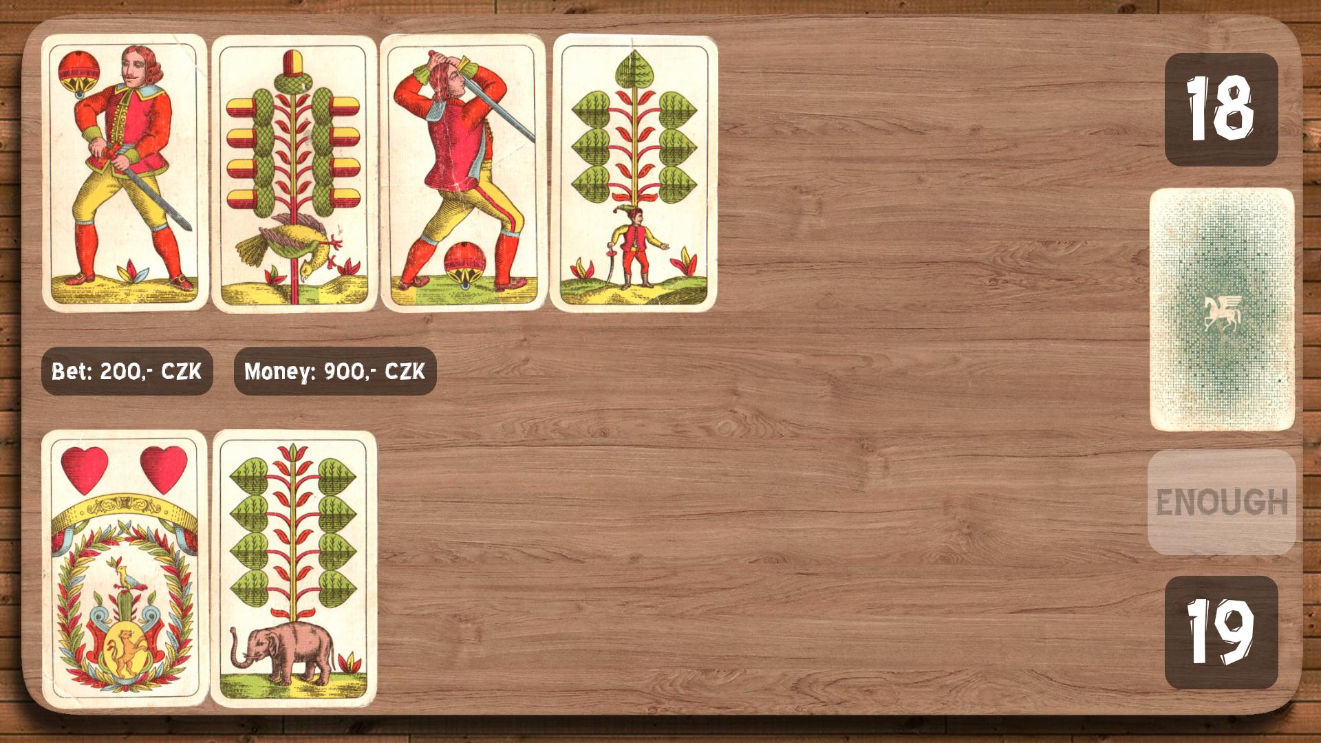 You play against Android. At the beginning of each round you will receive one card and then you have to bet something on. Android bets the same amount. After bet you continue by taking next cards from the deck until you reach the sum of 21 or at least