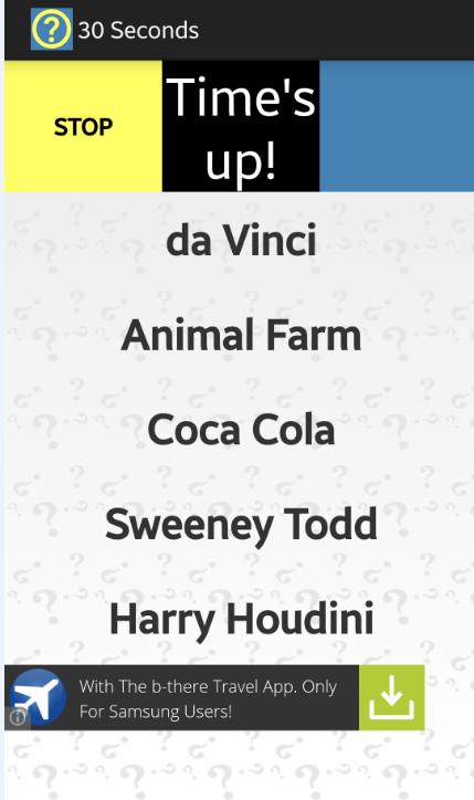 Test your general knowledge with this fast paced quiz game. Your friends have 30 seconds to guess as many of the words correctly from your explanation. Loads of popular topics included in over 1000 words.