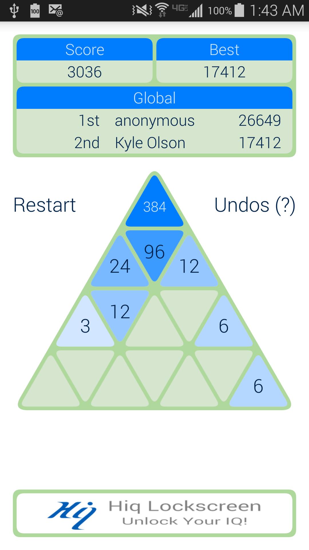 3072, combine the similar triangles, climb the leaderboard, get the highscore, then do it again. Just share a screenshot and friends will be challenged to beat your score.