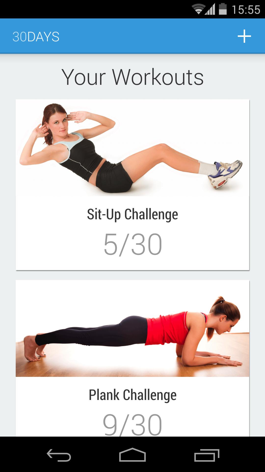 30DAYS gives you 30 day training programmes to follow. 30DAYS tailors the workouts to your fitness level. On day 1 you do as many / long of the exercise as you can, then 30DAYS works out a training plan for you.
