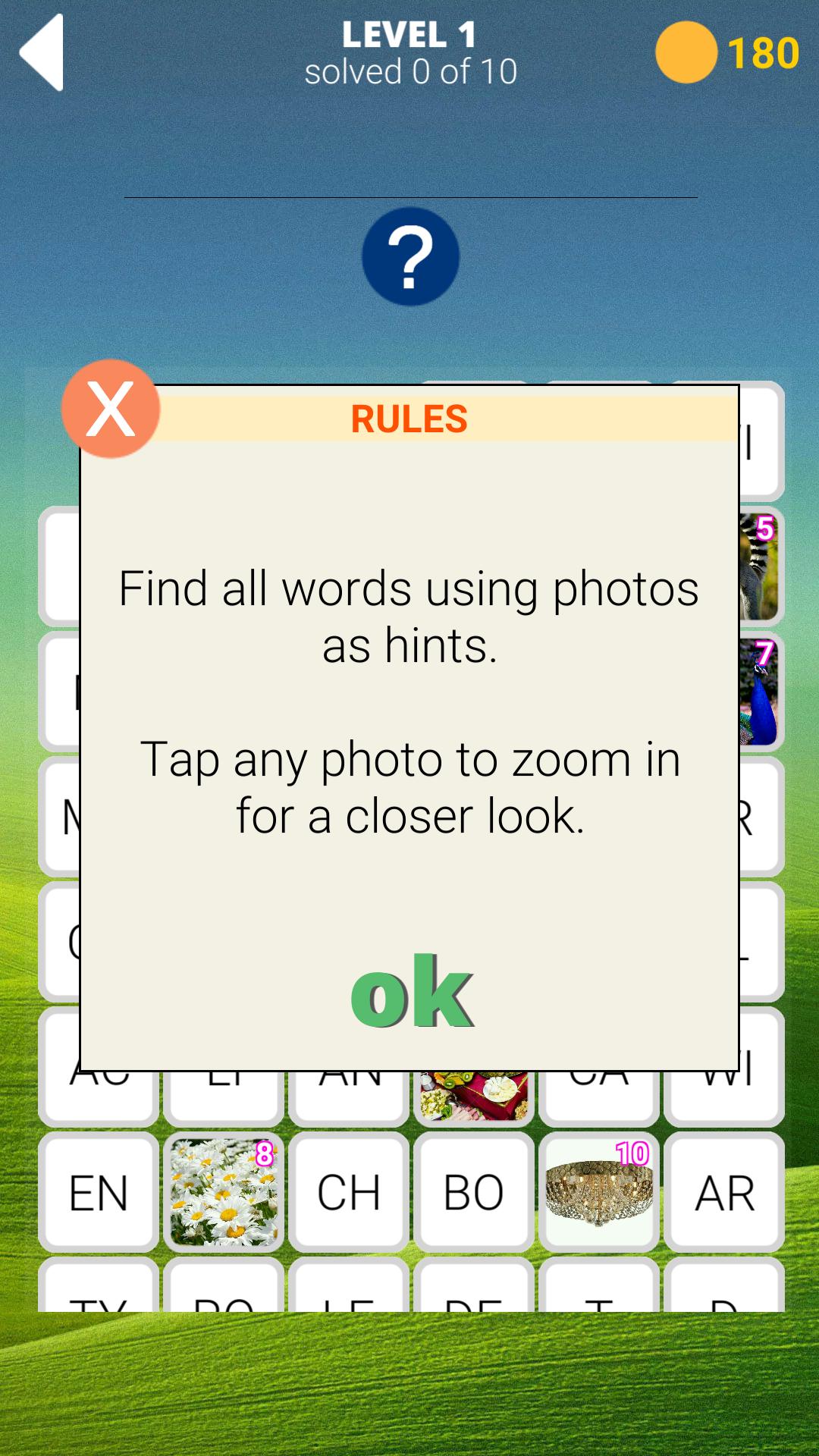 The game process is divided into two types, each level consists of twenty words, the lessons of the game are divided into photos and the answers to them that are broken into syllables, your task is to look at the photo to guess and compose a word from syllables, when you click on any photo the picture can be increased. This wonderful game was created to play in the company of friends, family and friends. Play at your choice in: English, French, German, Russian, Italian and Portuguese.
