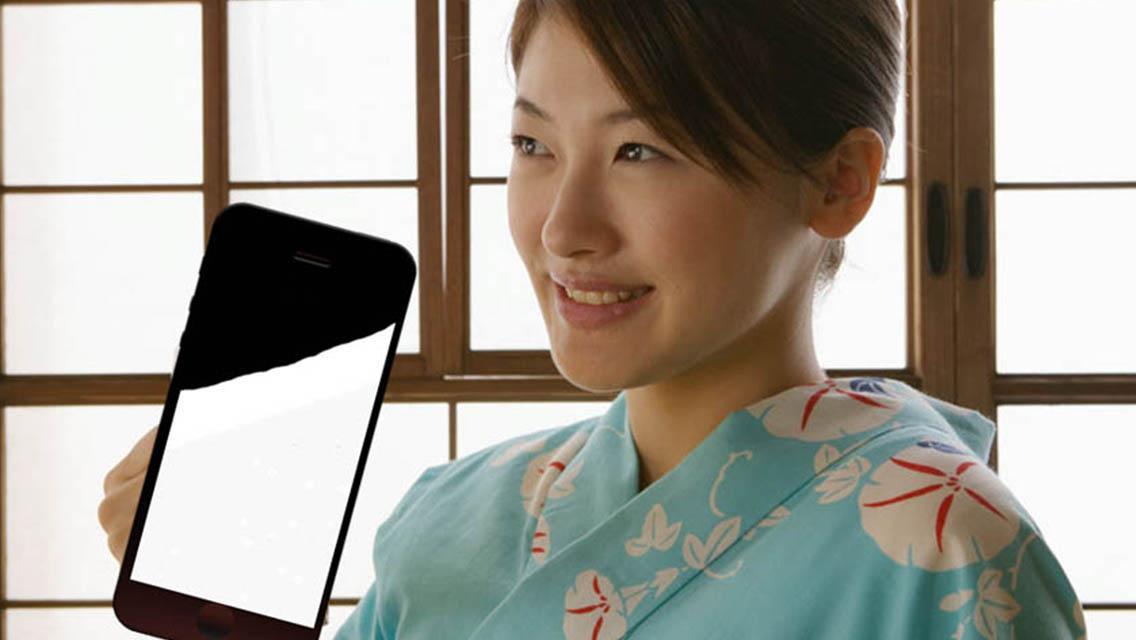 احتفظ بالهاتف في راحة يدك مع الشاشة الموجهة إلى أصدقائك.