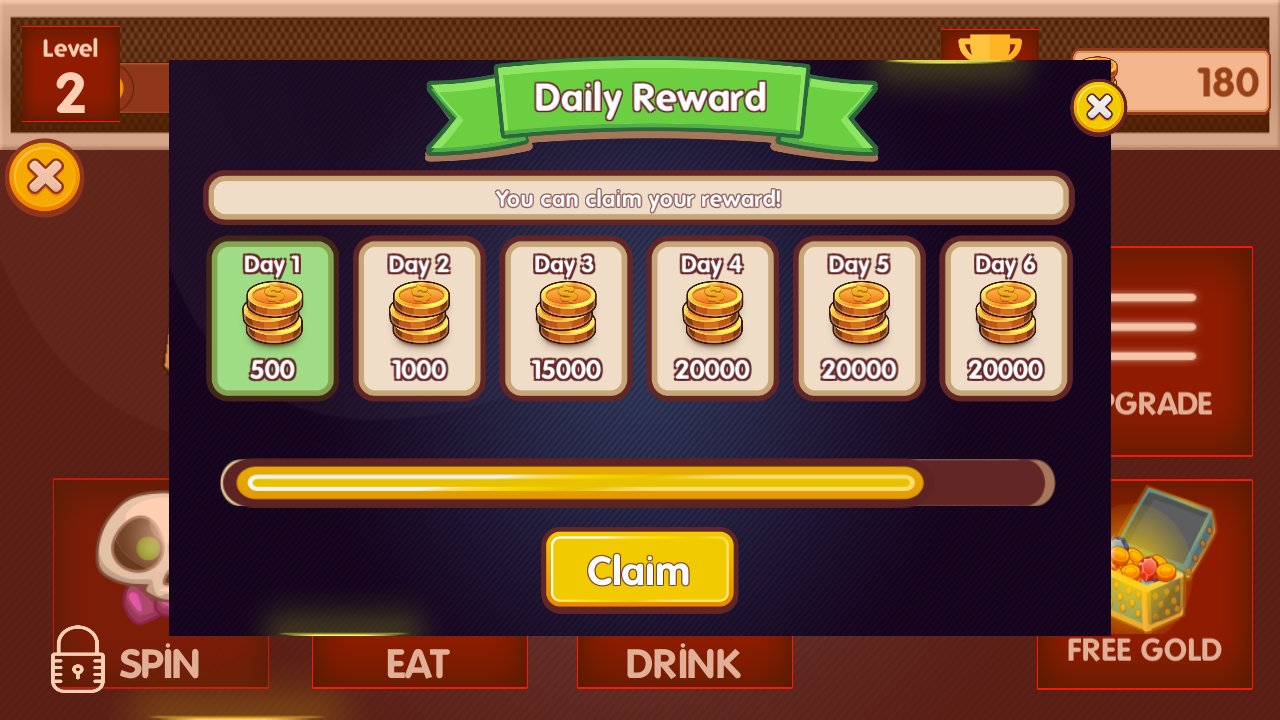 في هذه اللعبة، تلعب دور قرصان يحب اللعب على ماكينة القمار، وللقيام بذلك تحتاج إلى ترقية مستوى القرصان، وفي كل مرة تشرب وتأكل شريط مستوى القرصان يمتلئ، وبعد ذلك يمكنك أولاً لعب اللعبة داخل اللعبة.