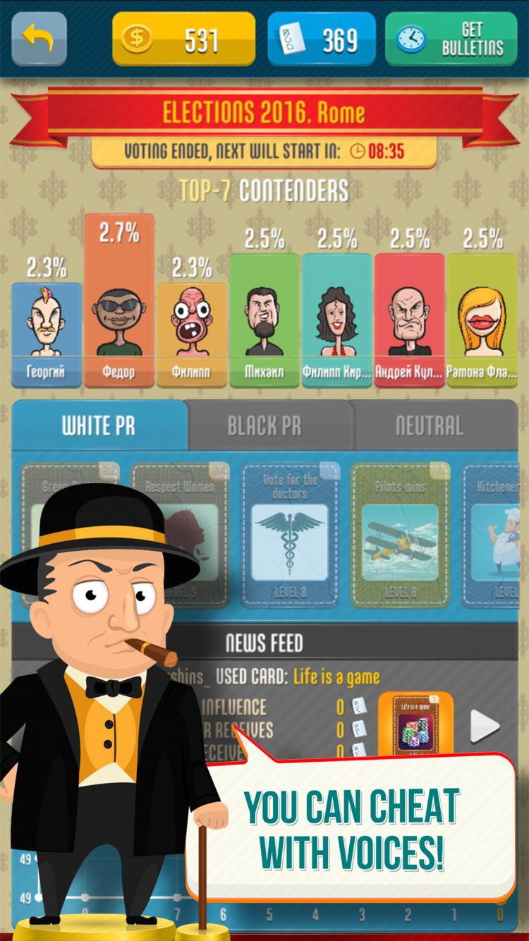 - في اللعبة، يمكنك الغش في Election باستخدام تقنيات العلاقات العامة بالأبيض والأسود