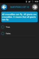 هنا عليك تحديد الصواب الرسمي لاستنتاج منطقي بناءً على بيان محدد (أو سلسلة من العبارات). لا يلعب الواقع أي دور في هذه الحالة (يصعب اجتياز الاختبار ، لأن المحتوى سخيف ، لكنه منطقي تمامًا).