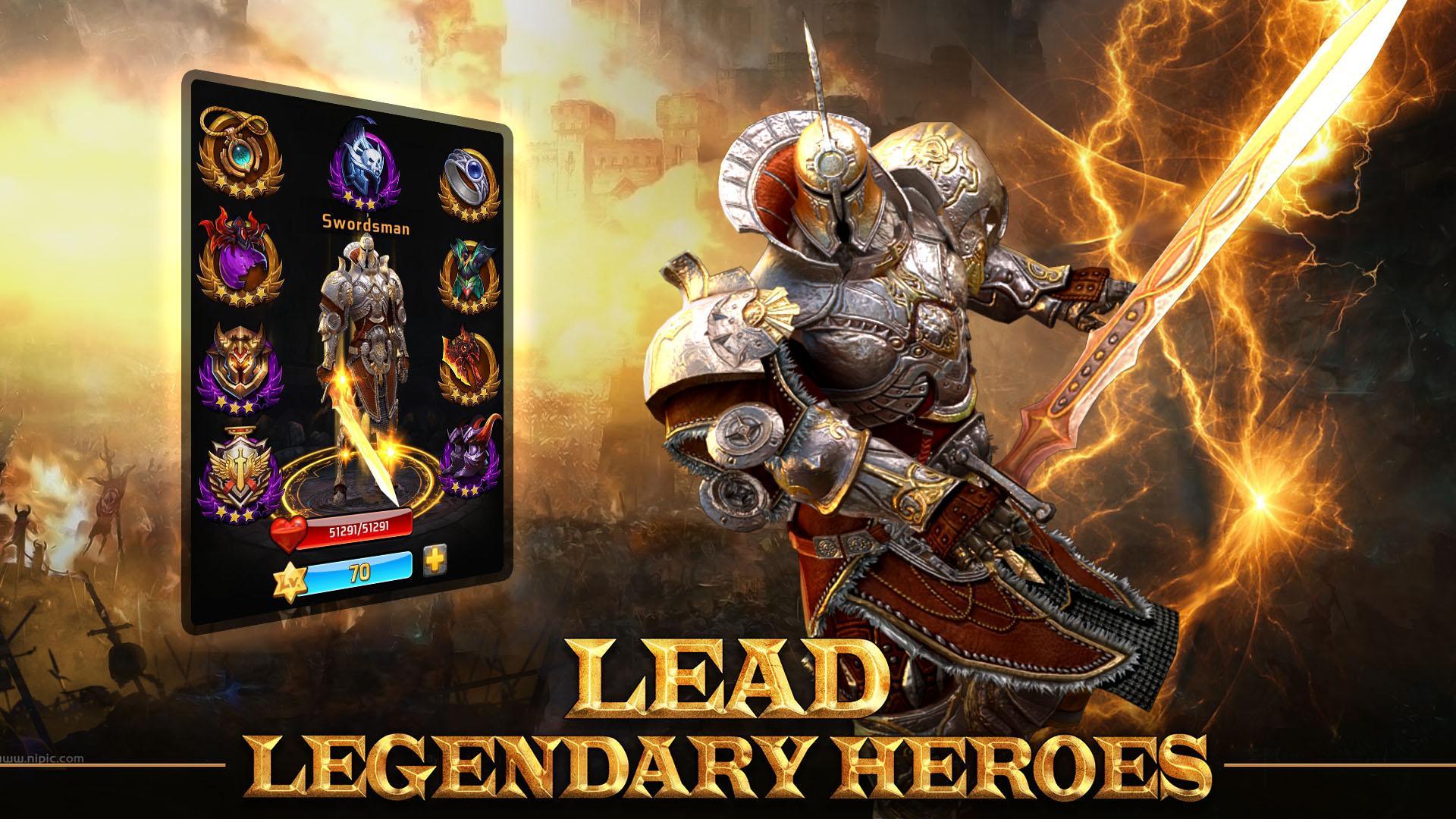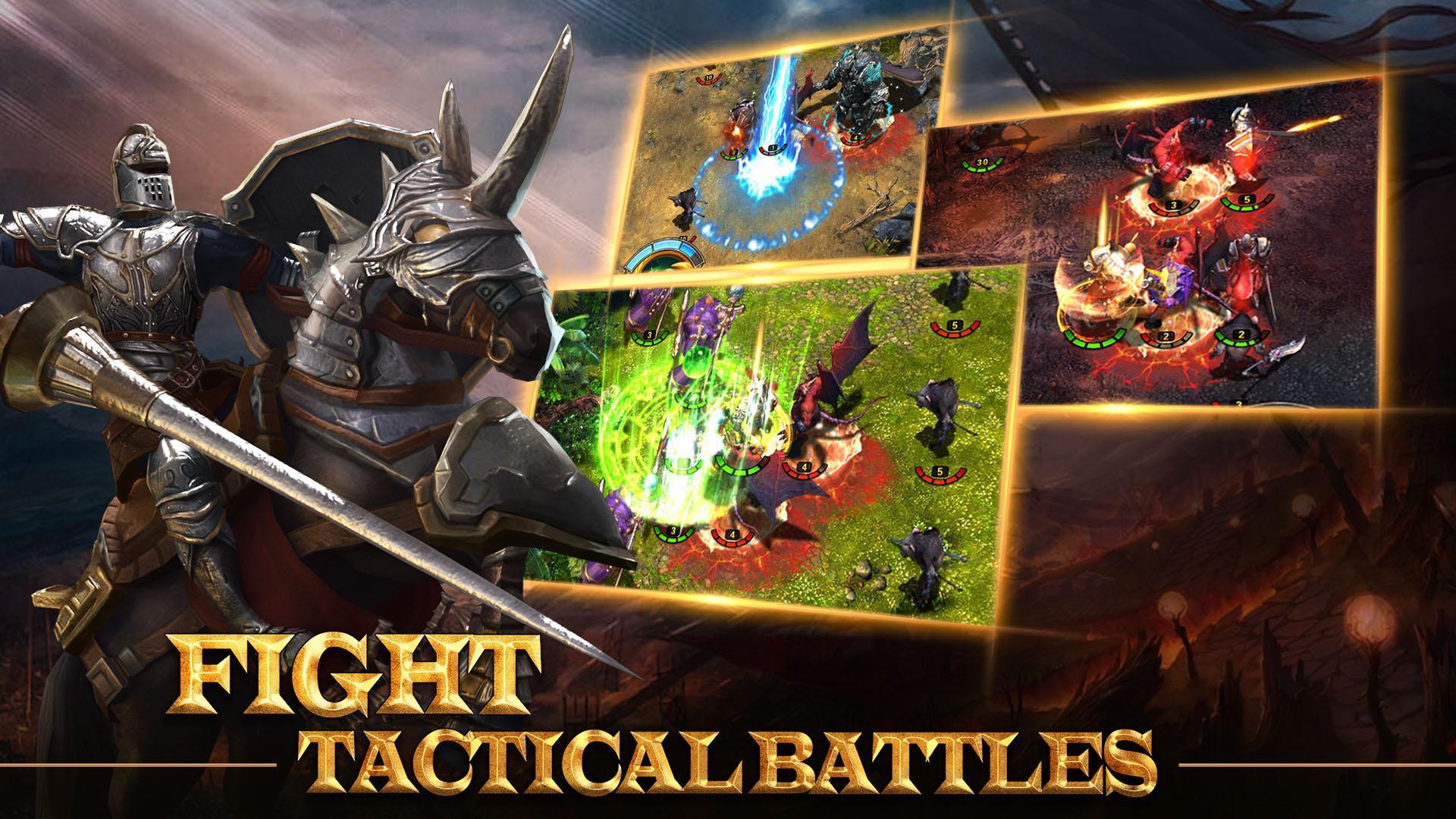 قم بتطوير أسلوب قيادتك من خلال توظيف العديد من الأبطال ، وتشكيل تحالفات ، وشراء وتزوير المعدات ، والبحث في السحر ووضع تكتيكات الحروب المقبلة. Watch how your decisions unfold and pit yourself against wild monsters and human players who are looking to strip you of all you have achieved.