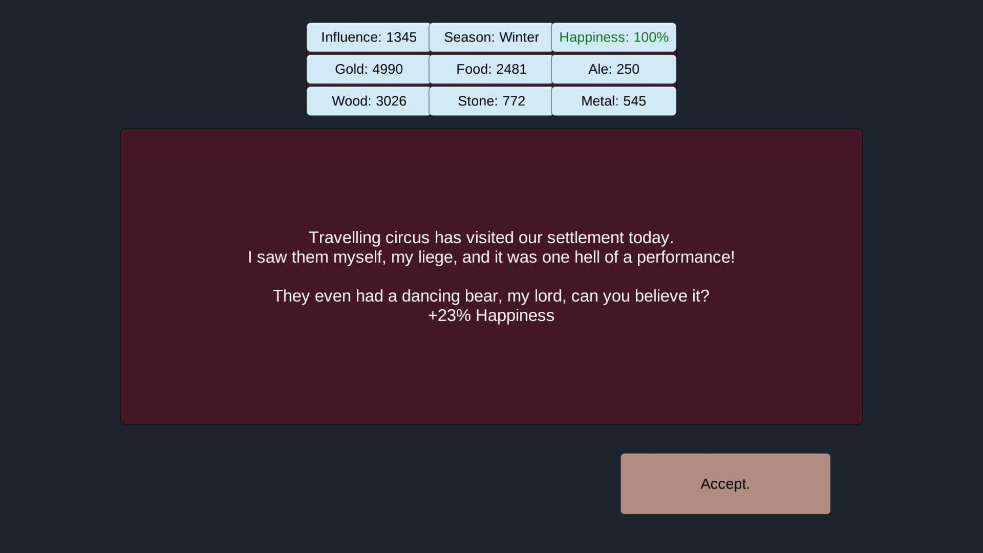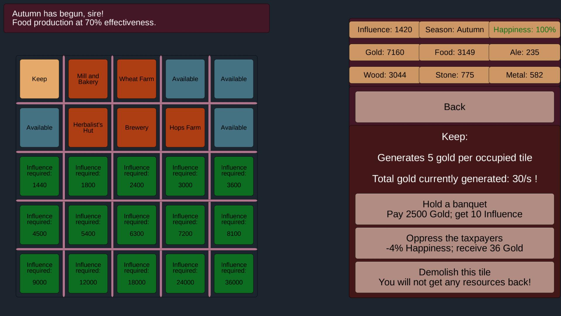 - ستة موارد مختلفة: الذهب ، الطعام ، البيرة ، الخشب ، الحجر ، المعدن!