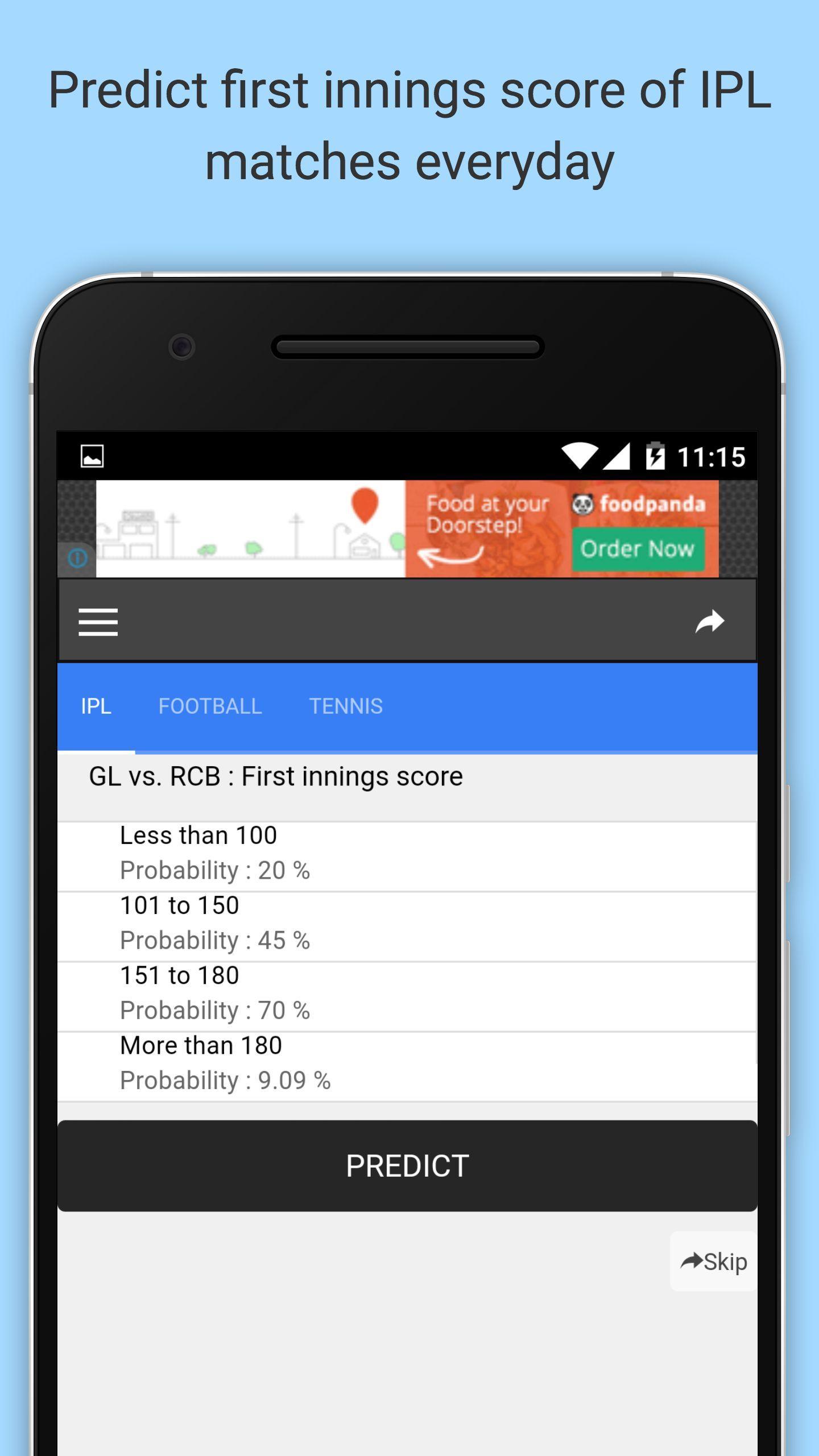 On home screen, tap on the match which you want to predict. On the match screen, tap on the team you think will win the match. Be judicious while predicting. Being too defensive will leave you behind the race while taking too much risk might bring doom.