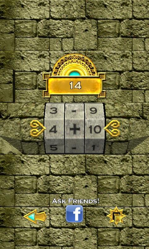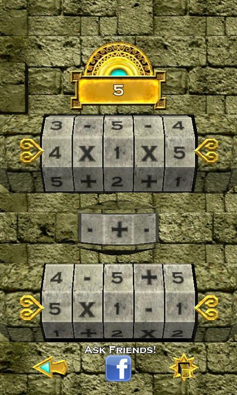 يمكنك تشغيل الوضع العادي حيث يتعين عليك تحويل العجلات الحجرية إلى المعادلة الصحيحة للحصول على الرقم المطلوب ، وضع عكس حيث تم تعيين المعادلة بالفعل وعليك أن تعطي الإجابة الصحيحة ووضع السلسلة حيث تحصل على 5 أرقام من السلسلة وعليك تحويل العجلة إلى الرقم السادس الصحيح.