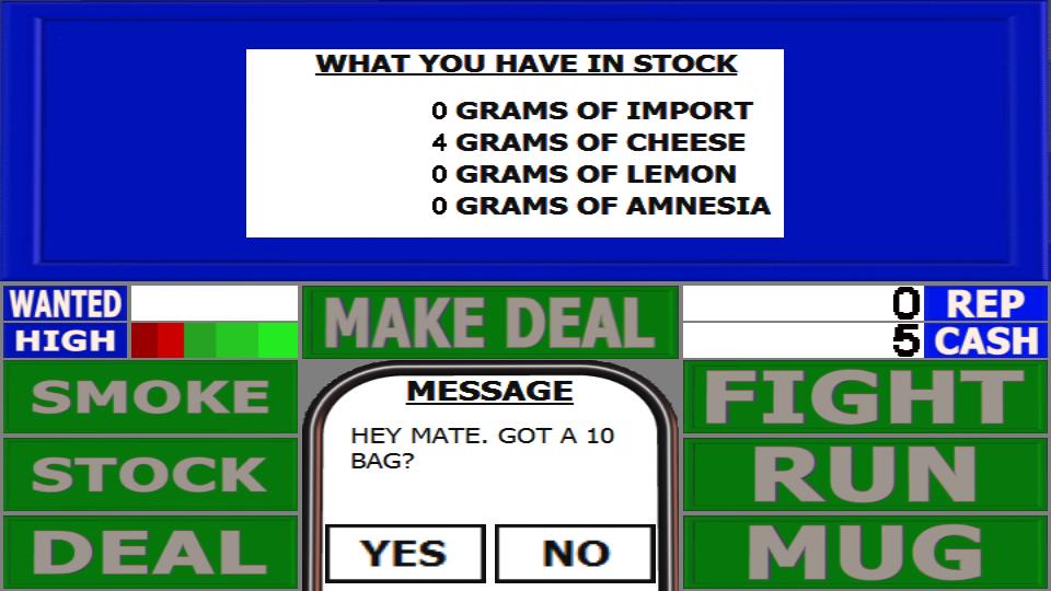 إذا رأيت رجل شرطة بدلاً من عميلك ، فمن الأفضل أن تعمل بسرعة! إذا قمت بالركض ، فستخسر القليل من النقود و 1 غرام من كل من الأعشاب الضارة. ولكن إذا تم القبض عليك ، فسوف تفقد كل أعشابك.