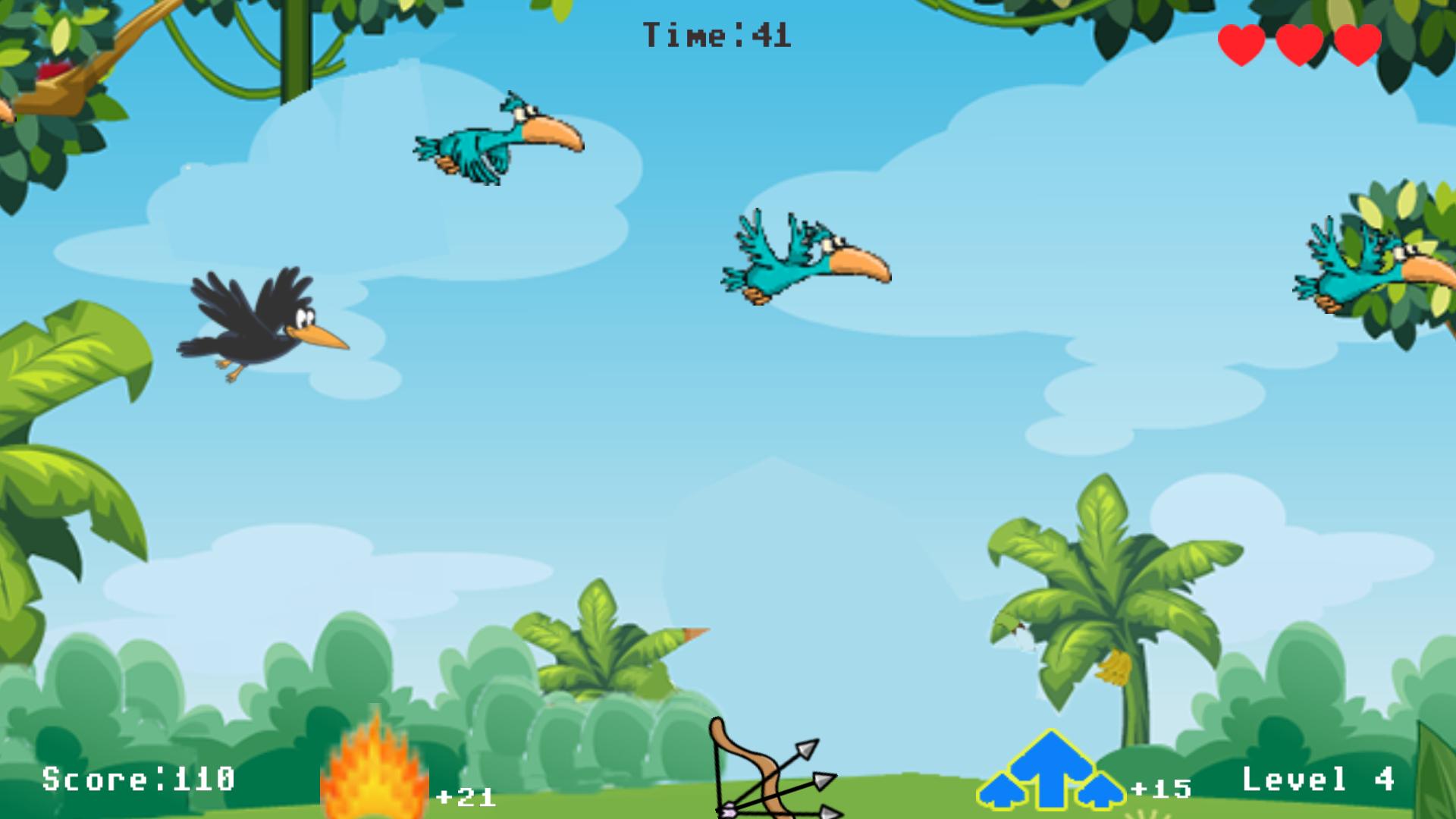Archery birds play simple. Birds fly from left to right. Please protect the screen on the right. If 3 birds fly to the right screen the game will end.