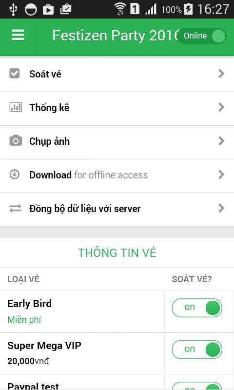 Event organizers can easily scan the e-tickets of their events automatically. They can also sync data to their own phones so that they can check-in without an internet connection.