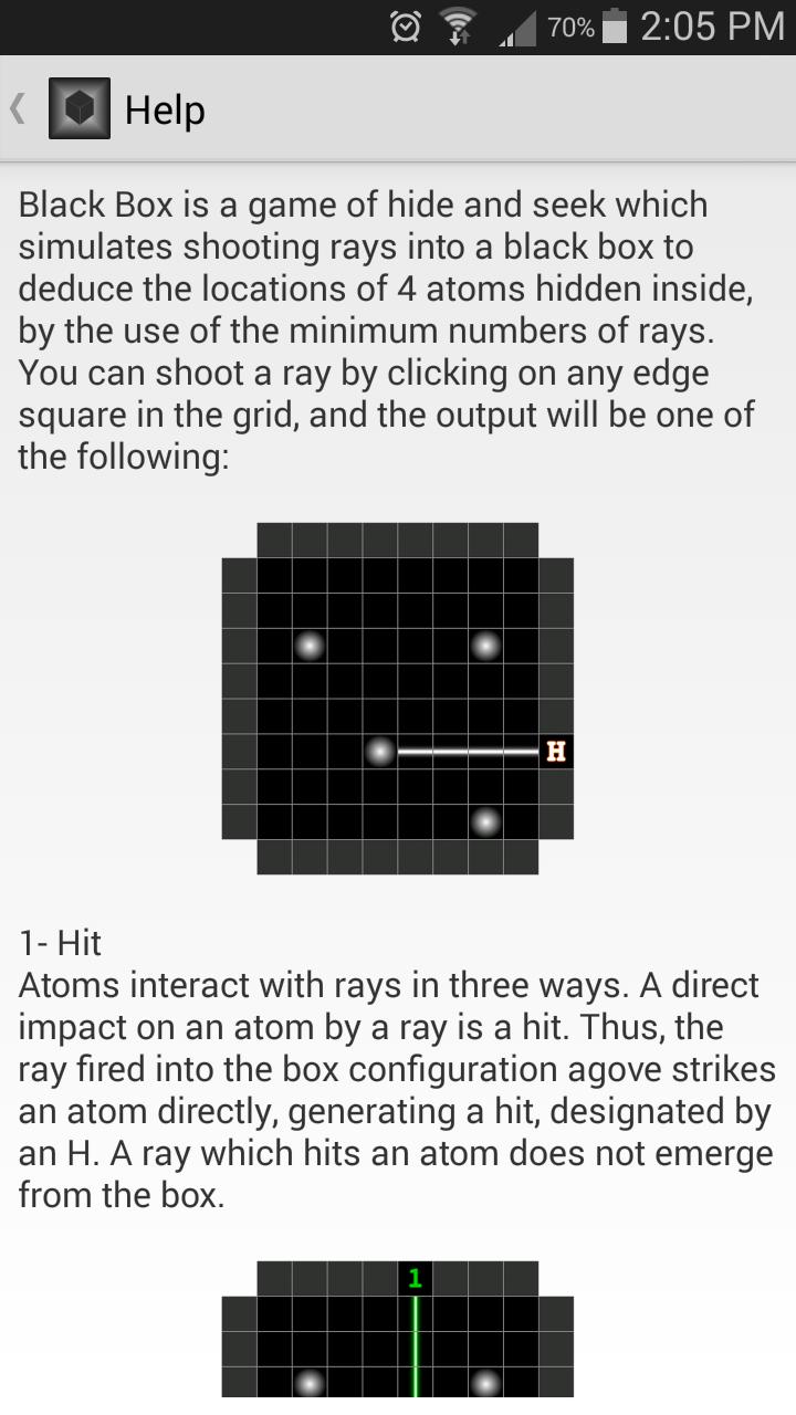 The goal of the game is to locate the hidden atoms inside a black box by shooting light rays into the box and observing the way those rays reflect in order to deduce the positions of the atoms.