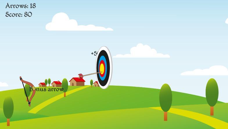 Can shoot at a target with bow and arrow in the game and reach a high score.