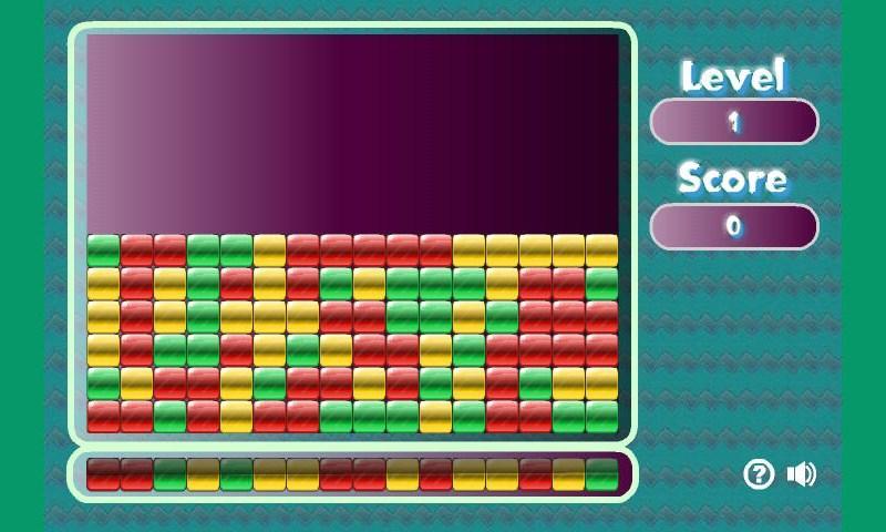 Have an immense load of fun while playing Bricks Breaking II! In this game it is your job to destroy the grids by clicking groups that have at least three of the same colored blocks. Work fast though because time is not on your side. As you are breaking bricks more bricks are arriving on the screen! Fun tip: Do not fret though because if you are able to break at least 15 bricks you will be awarded a bomb and this will help destroy surrounding bricks. Time will fly while playing this fun filled game!