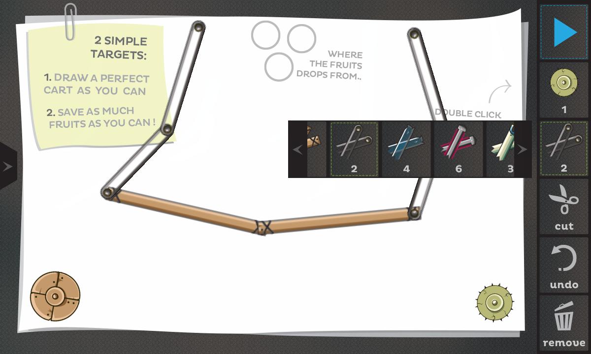 The very goal of this addictive vehicle game is to carry all your fruits along the way, without losing anything. You can start your vehicle craft with single-wheeled device, and slowly work your way up in this fun racing games to two-wheeled, three-wheeled device. If you think your vehicle physics game is strong, try creating a tank and see what happens! It sounds easy to only carry a bunch of fruits to the end of the road but you will realize that we made this vehicle game a bit harder to finish because we want you to stay with us until you mastered your vehicle craft!