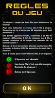 - For your first mission, you will need to memorize 5 color wires. It will then be necessary to find them among 10 wires and cut them! You have 3 trials! An help button allows you to review the colors for a few seconds. If you fail, the bomb explodes!