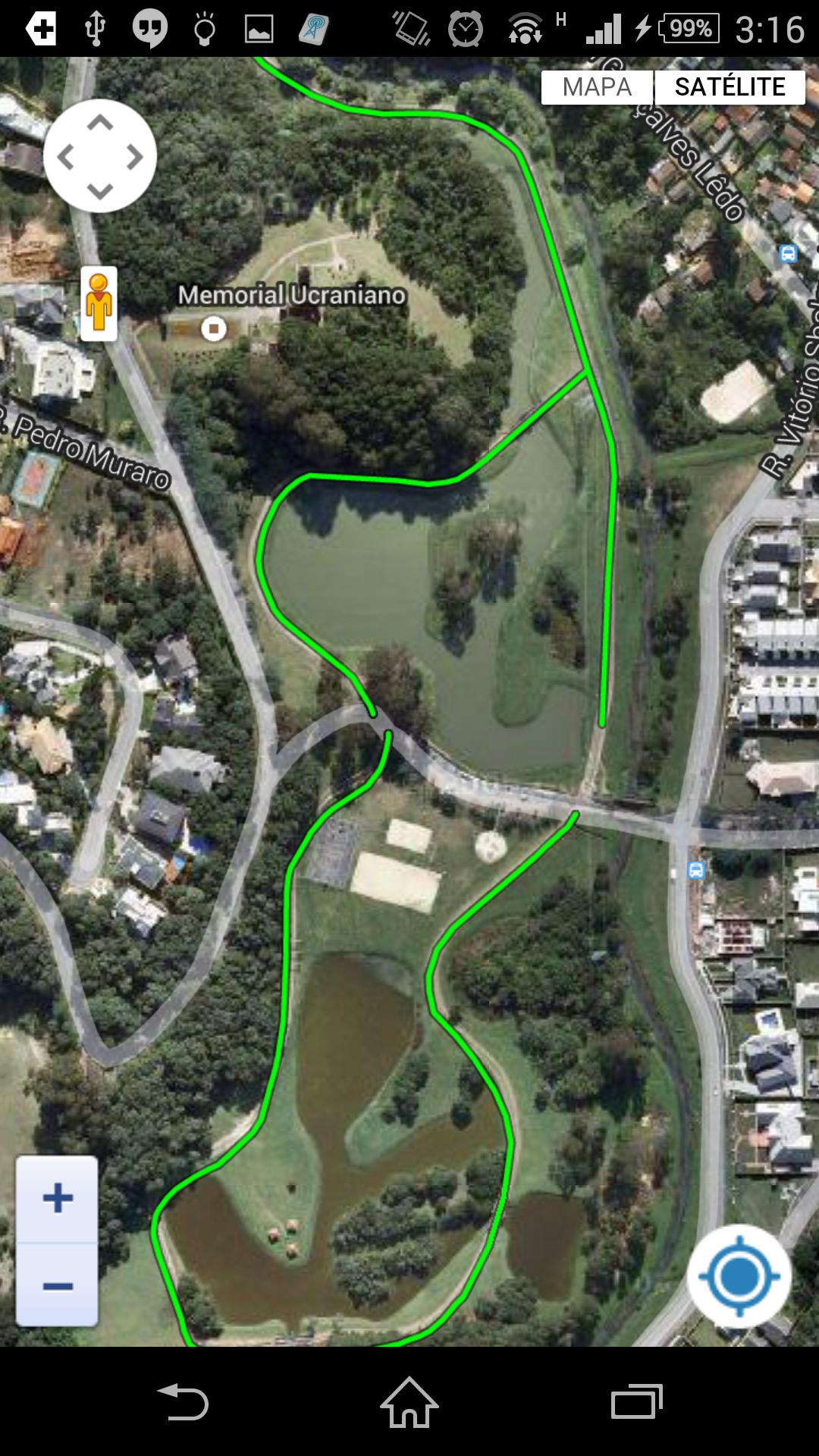 The application draws its position on the map and presents the path of Ciclovias .