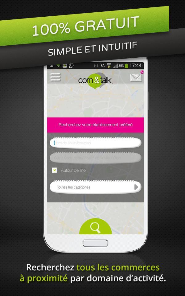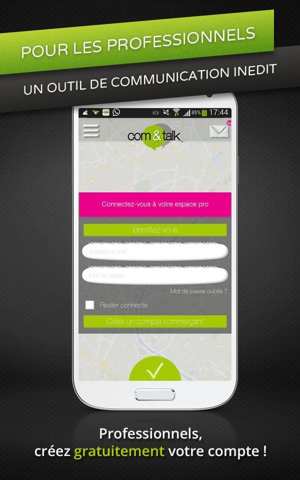 com&talk , the new application essential to keep in touch with your favorite shops! Connect yourself and receive information and good plans directly on your Android smartphone!