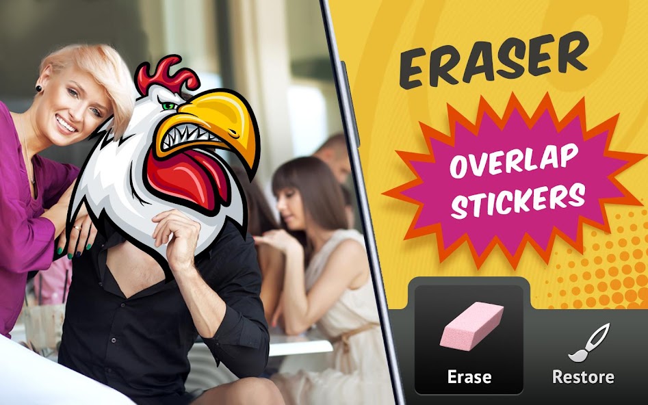 Replacing faces on photos with character stickers, your photos become personalized and unique once you begin highlighting your friends' characters, emphasize actions and emotions on your photo. Install Comics Mask and you'll see just how easy it is to create some really amazing stuff out of your photos and selfies.