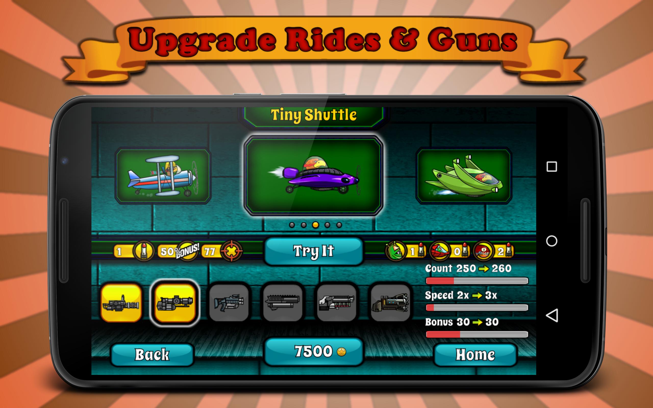 - Experience and attack funny characters, Zombies, hilarious aliens, amazing hi-tech rides, guns and lot more in game