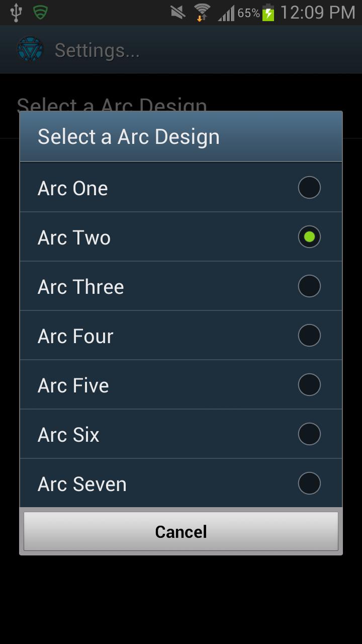 Der berühmte Bogenreaktor ist hier. Die Einzigartigkeit dieser App ist, dass Sie den Bogentyp entsprechend Ihrem Wunsch in den Einstellungen ändern können.