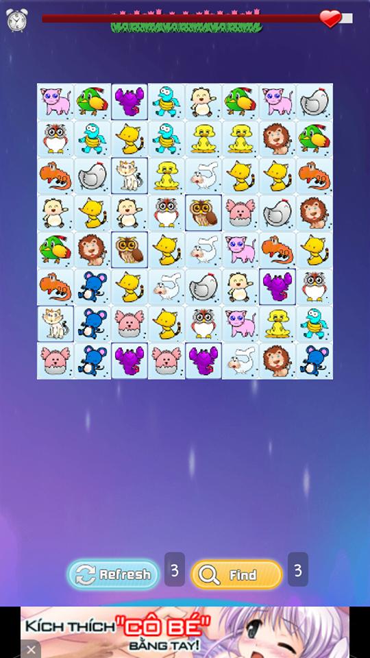 - Jedes Spiel beginnt mit 10 Live (Classic -Modus) und 18 Live -Modus. Jedes Mal, wenn kein Paar essen kann, werden die Tiere die Position umkehren und das Live nimmt 1 ab, damit das Leben nicht auf 0 abnimmt :) :)