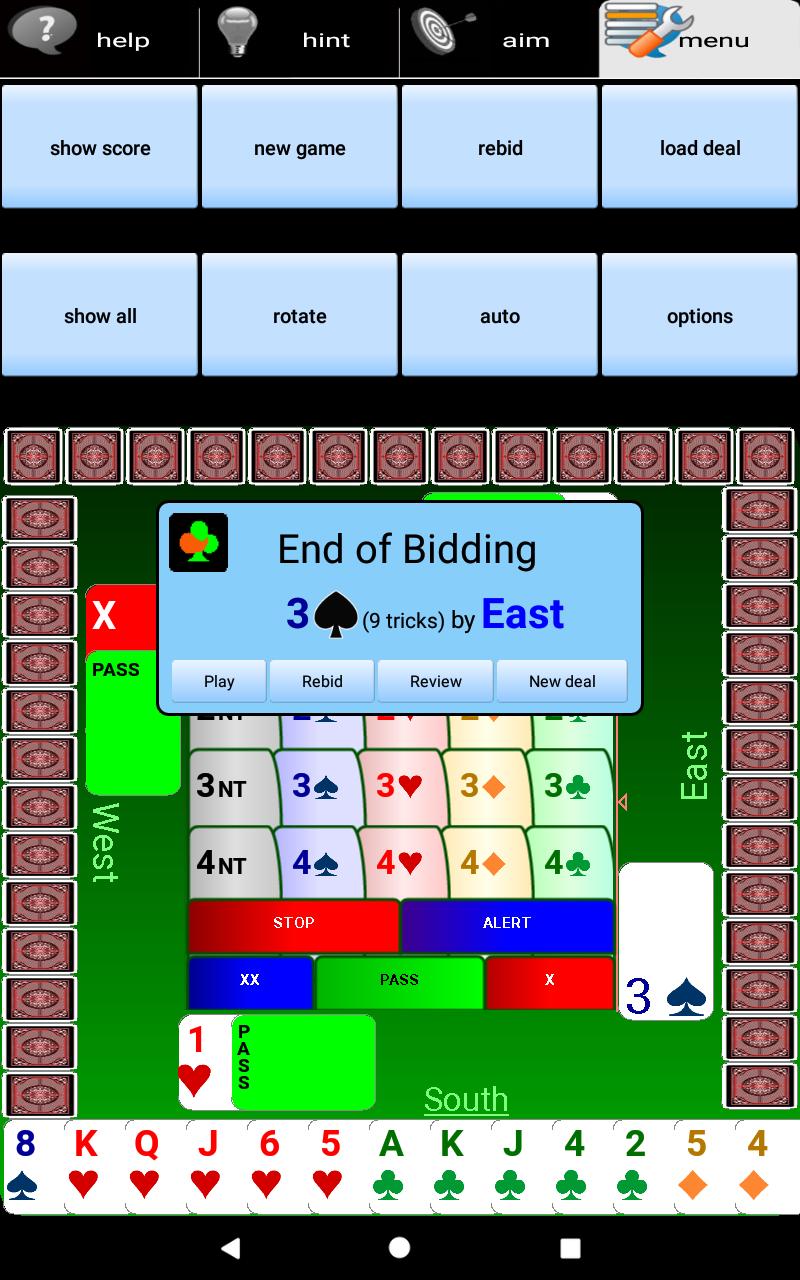 Die "Pro" -Version dieser App richtet sich an erfahrenere Spieler, die aus einigen der fortgeschritteneren Konventionen auswählen möchten. Es enthält eine 2/1 -Gebotsoption.