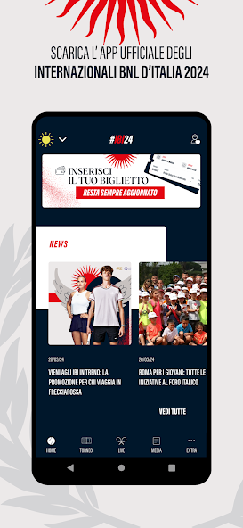 IBI24 ist die offizielle App der 81. Ausgabe des Internazionali Bnl d'Italia, des wichtigsten italienischen männlichen und weiblichen Tennis -Turniers. Die Veranstaltung findet vom 6. bis zum 19. Mai 2024 statt.