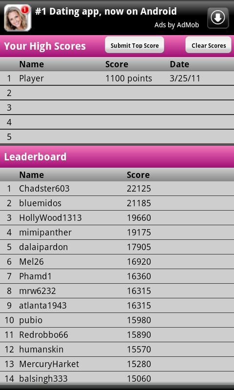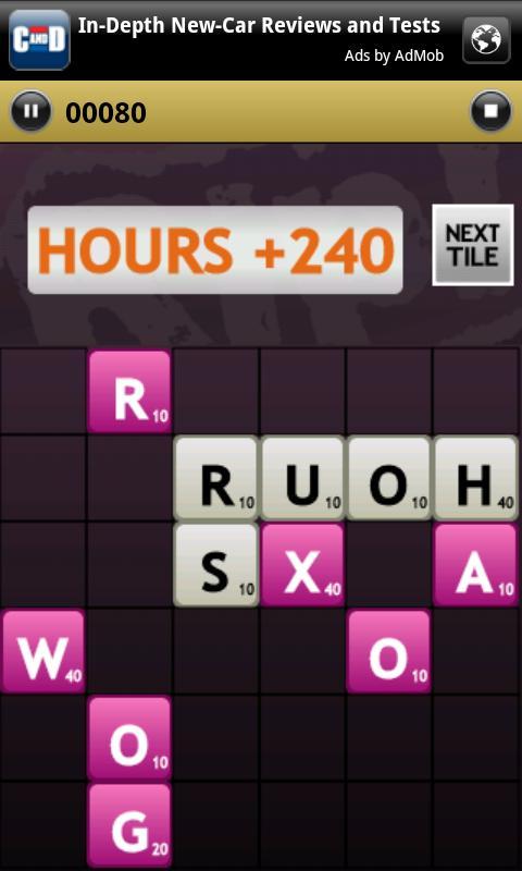 Die Spieler rutschen (RIP!) Fliesen um das Brett, um in diesem Scrabble-ähnlichen Spiel Wörter zu bilden. Sobald ein gültiges Wort erstellt wurde, verschwinden seine Fliesen. Zufällige Buchstabenfliesen werden kontinuierlich angezeigt, während Sie Rennen fahren, um zu verhindern, dass das Spielbrett füllt. Sobald das Board ausgefüllt ist, ändert sich das Spiel und Sie müssen das Board aller verbleibenden Kacheln räumen. Sie haben zusätzliche Kacheln, die Ihnen helfen, und können sogar Buchstaben mit Ihren Punkten kaufen. Löschen Sie das Board und Sie erhalten zusätzliche 1000 Punkte. Wie viel Spaß macht das? Sehen Sie, wie Sie sich gegen den Wettbewerb in der Leader -Board stapeln.