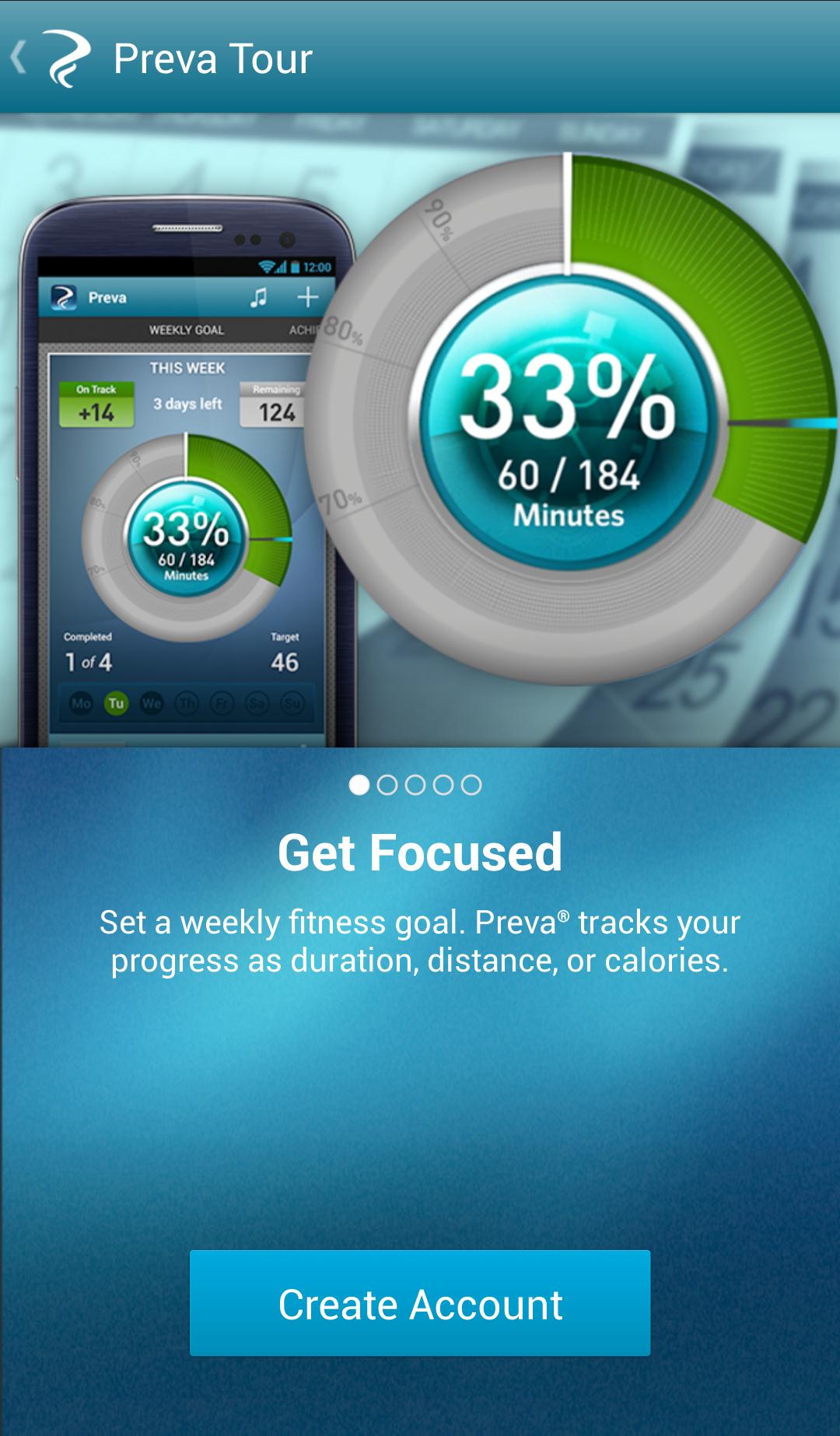 • Fokussiert: Setzen Sie ein wöchentliches Fitnessziel. Preva verfolgt Ihren Fortschritt als Dauer, Entfernung oder Kalorien.