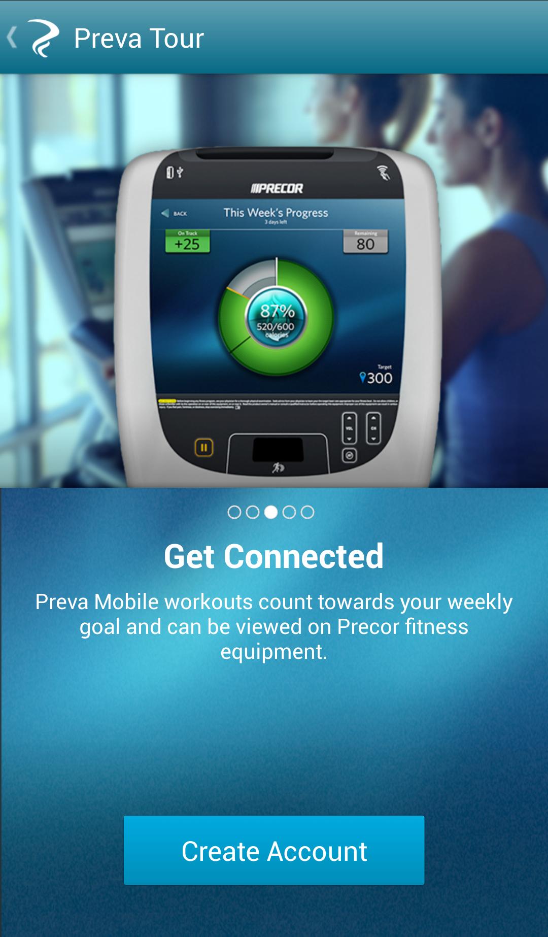 • Verbunden: Ihre Workouts mit Preva werden in der Cloud gespeichert. Sie können Ihre Fortschritte bei Precor Fitness Equipment und der Preva Mobile App verfolgen.