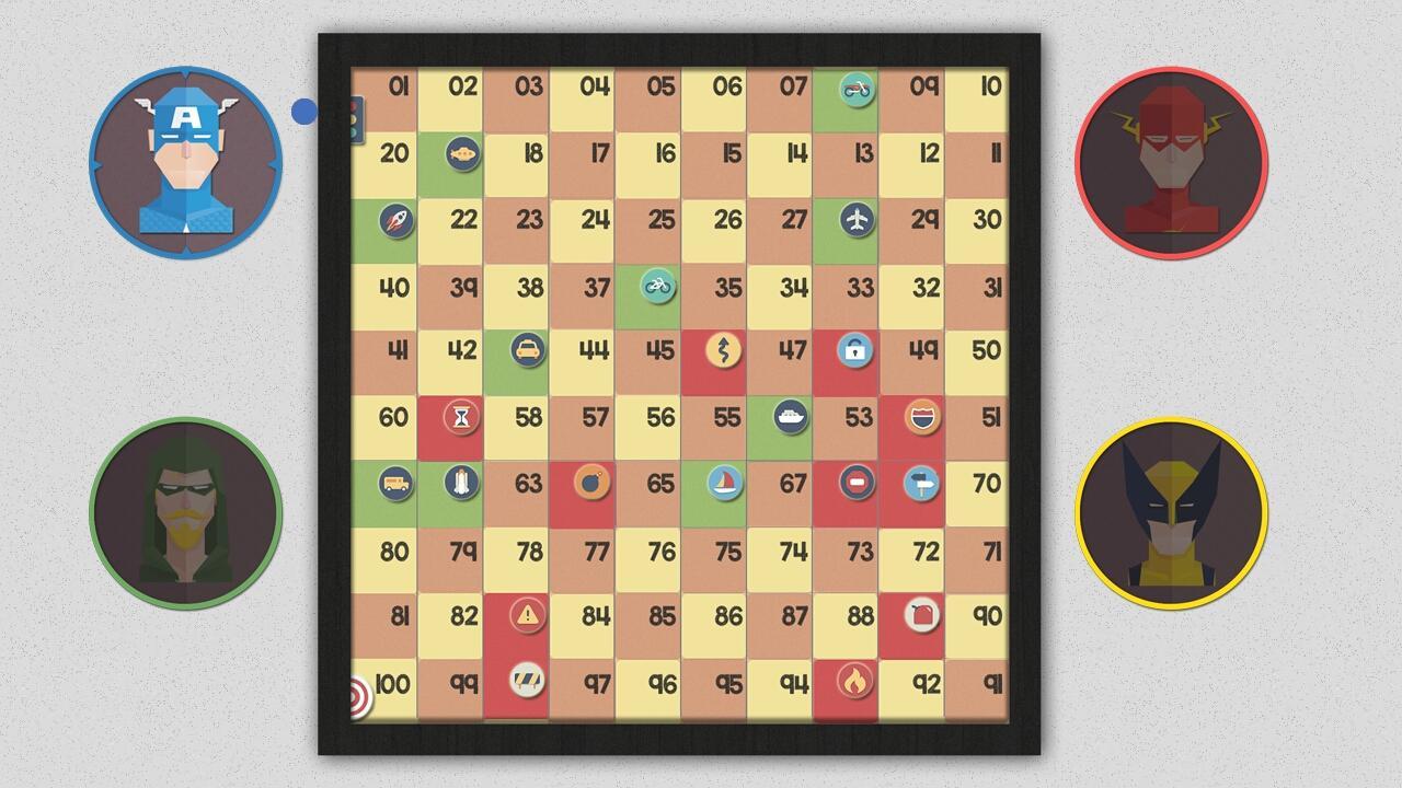 Spielen Sie die alte Lieblingsschlange und Leiter in einem modernen Avatar - spielen Sie als Superhelden und rennen Sie bis zum Ende gegeneinander. Holen Sie sich Assists in Form von Radfahrten und Jetpacks, aber seien Sie vorsichtig mit Straßensperren und Polizisten!