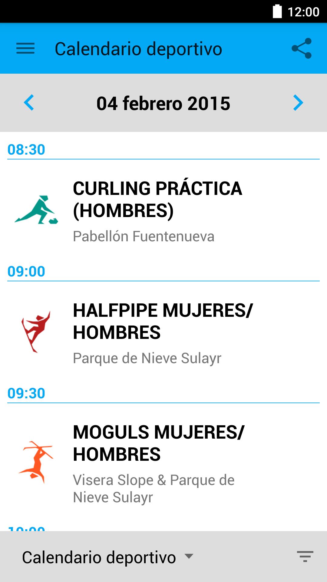 - Beschreibung über den Sport, den Zeitplan, das offizielle Programm, Informationen zu Hotels und Informationen zu dem Ort, an dem jeder Wettbewerb stattfindet.