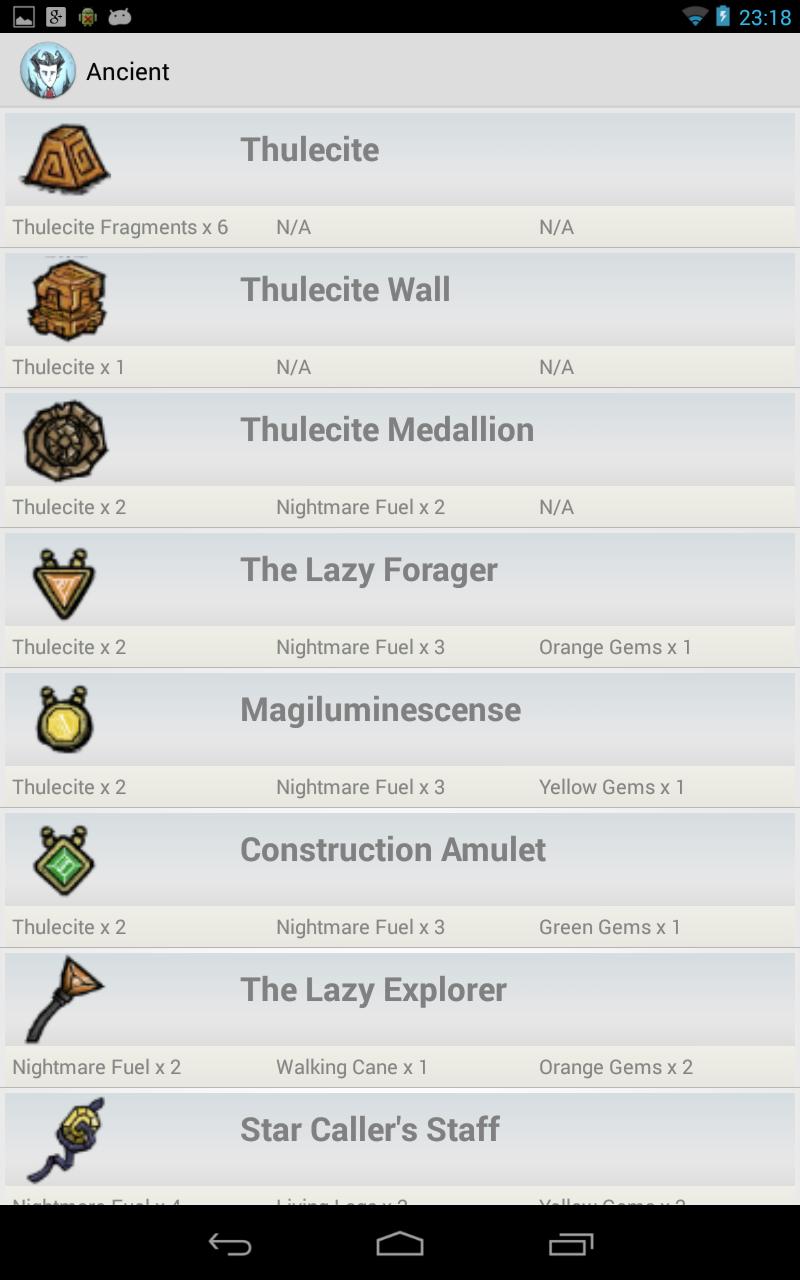At this point in time the app only really contains details of the items found in the crafting bar. This is by design, but I am considering expanding the app to other content areas.