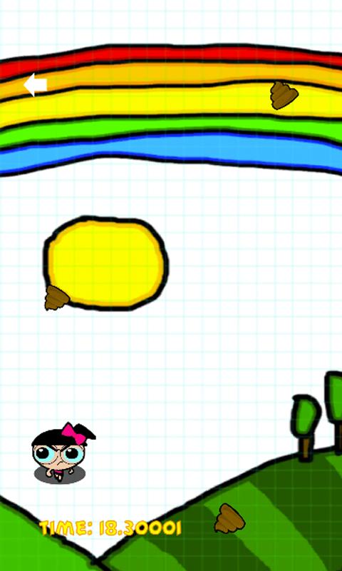 So straight forward to play. Just tap on the screen to dash Alice left and right. Find ways to avoid the falling poo and stay clean for as long as possible. You only have 1 life.