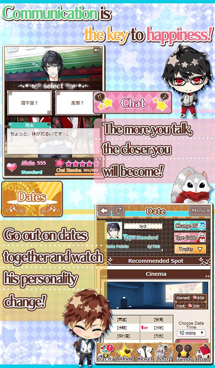 ・Chat, Work and go on Dates with your boyfriend to get closer, unlock new content and even earn in-game money!