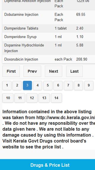 Detailed list of drugs price from Kerala govt, last updated on 25/7/2014