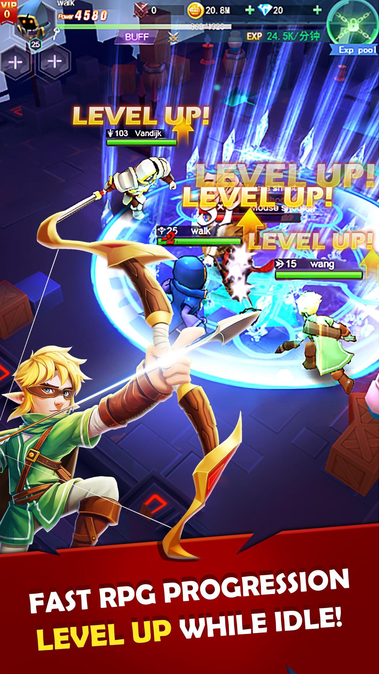Play any time you want whether online or offline to level up your character; spend a little time for massive EXP.