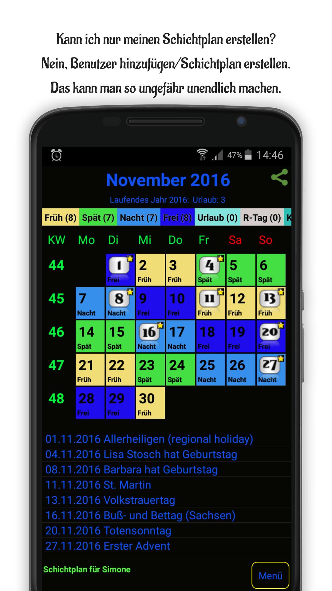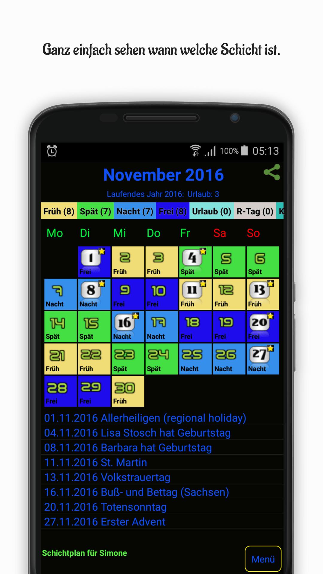 But this app is also suitable for people with changing workplaces, because you can not only enter shift row sequences, but also freehand.