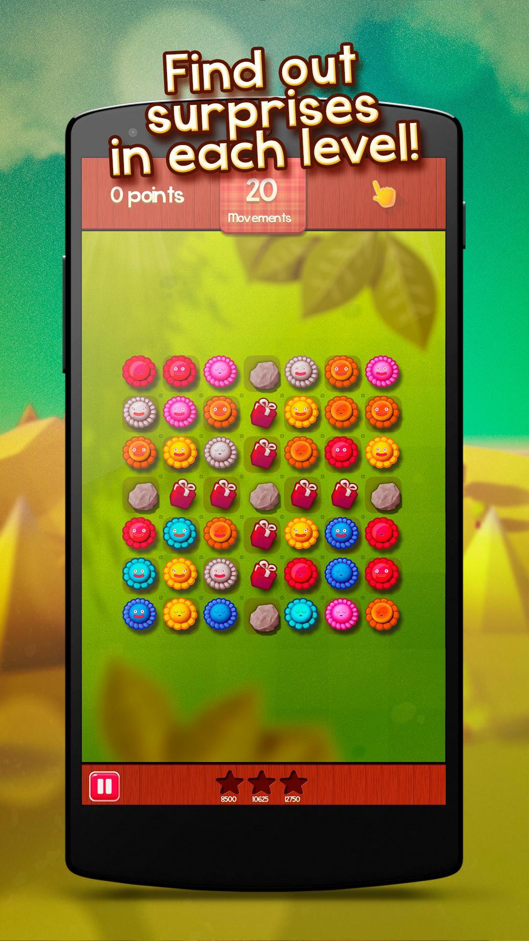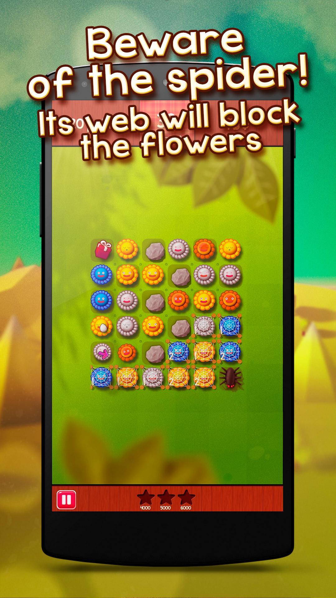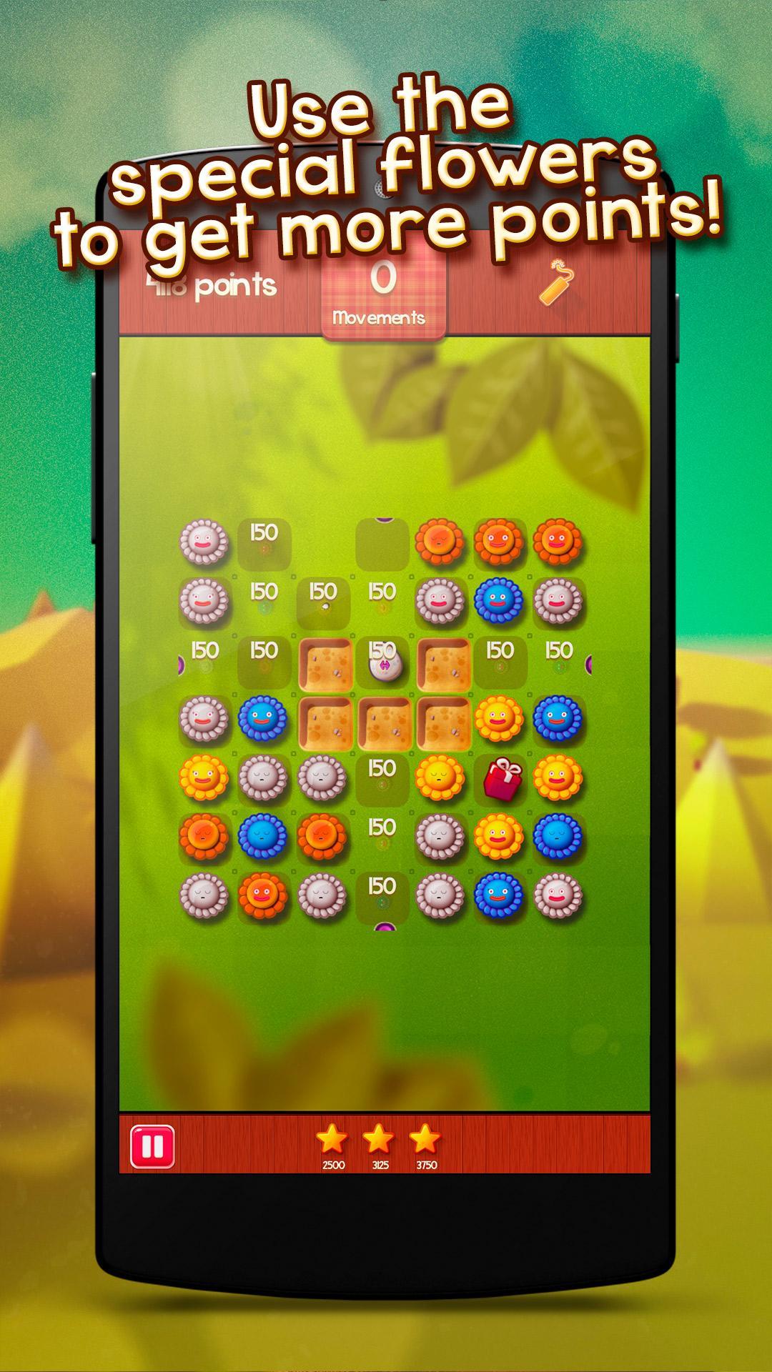 Su objetivo es alinear las mismas flores de color para hacer combinaciones. ¡Planifique sus movimientos sabiamente para obtener la mayor cantidad de puntos posible sin límite de tiempo!