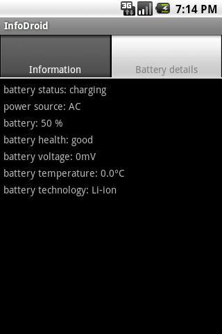 Pequeña programación, que muestra el nivel de batería real como un texto y gráficamente con un "Android" + SD y el uso de la memoria interna.
