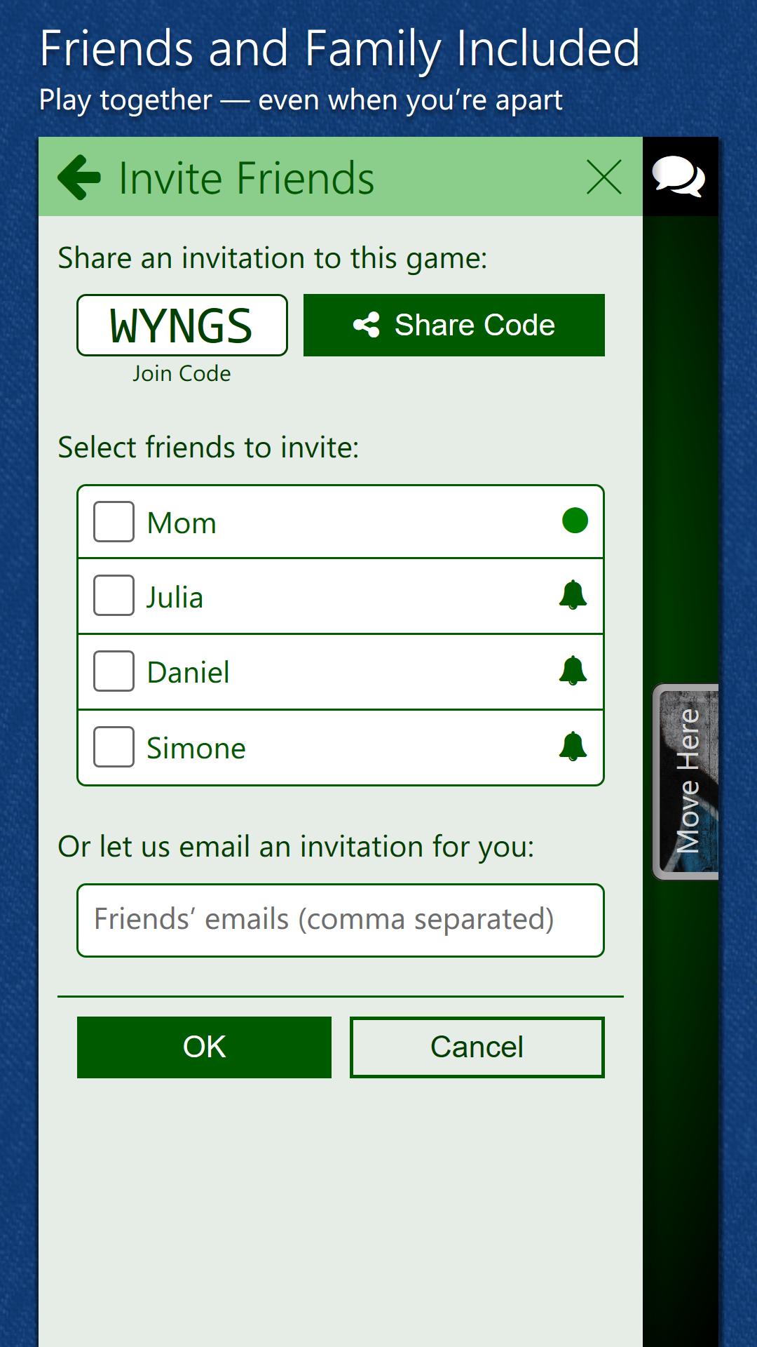 Juega juntos, incluso cuando estás separado. Seleccione "Unirse" y Trickster Pitch te ayuda a invitar a amigos y familiares a un juego. Encienda las notificaciones para escuchar sobre los juegos de amigos en cualquier momento. Ahora la noche de juego vive donde sea que estés.