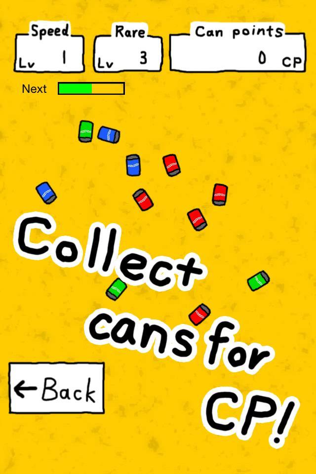 ¡Deslice para recolectar latas vacías y recolectar puntos de lata (CP)!