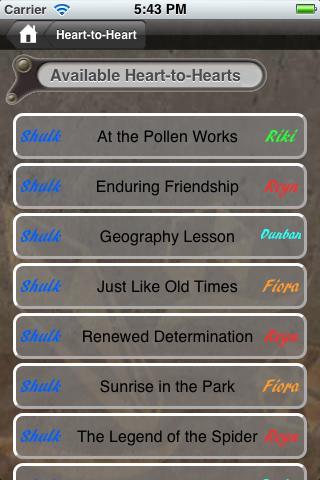 Además de explicaciones y guías, también presenta un ayudante para encontrar las descripaciones de corazón y de carácter disponibles. Esto incluye una lista con regalos para criar la afinidad de fiesta.