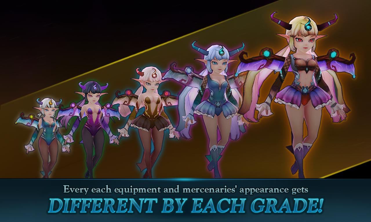 -Each mercenaries and equipment has different appearance by each grade(normal, rare, magic, unique, legend)