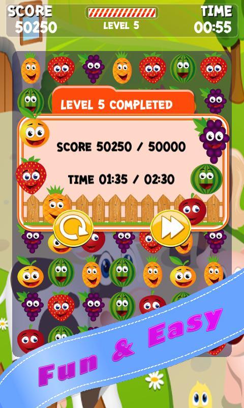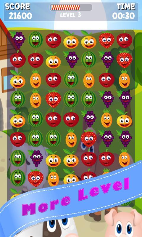 This game app recommended for toddlers,kids, boy, girl, men, women and all persons in your family. With the lovely cartoon fruits , Crush Star, Jewels Mania, Crush Mania .You can play this crazy and addictive Farm Pop Crush! Have Fun!!