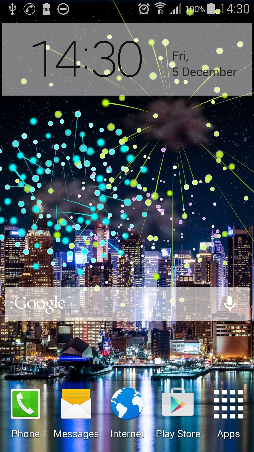 Do you want to keep fireworks for ever in your phone? No problem. This application can be set as animated wallpaper of your home screen. You only have to choose it from the list of animated wallpapers (live wallpapers).