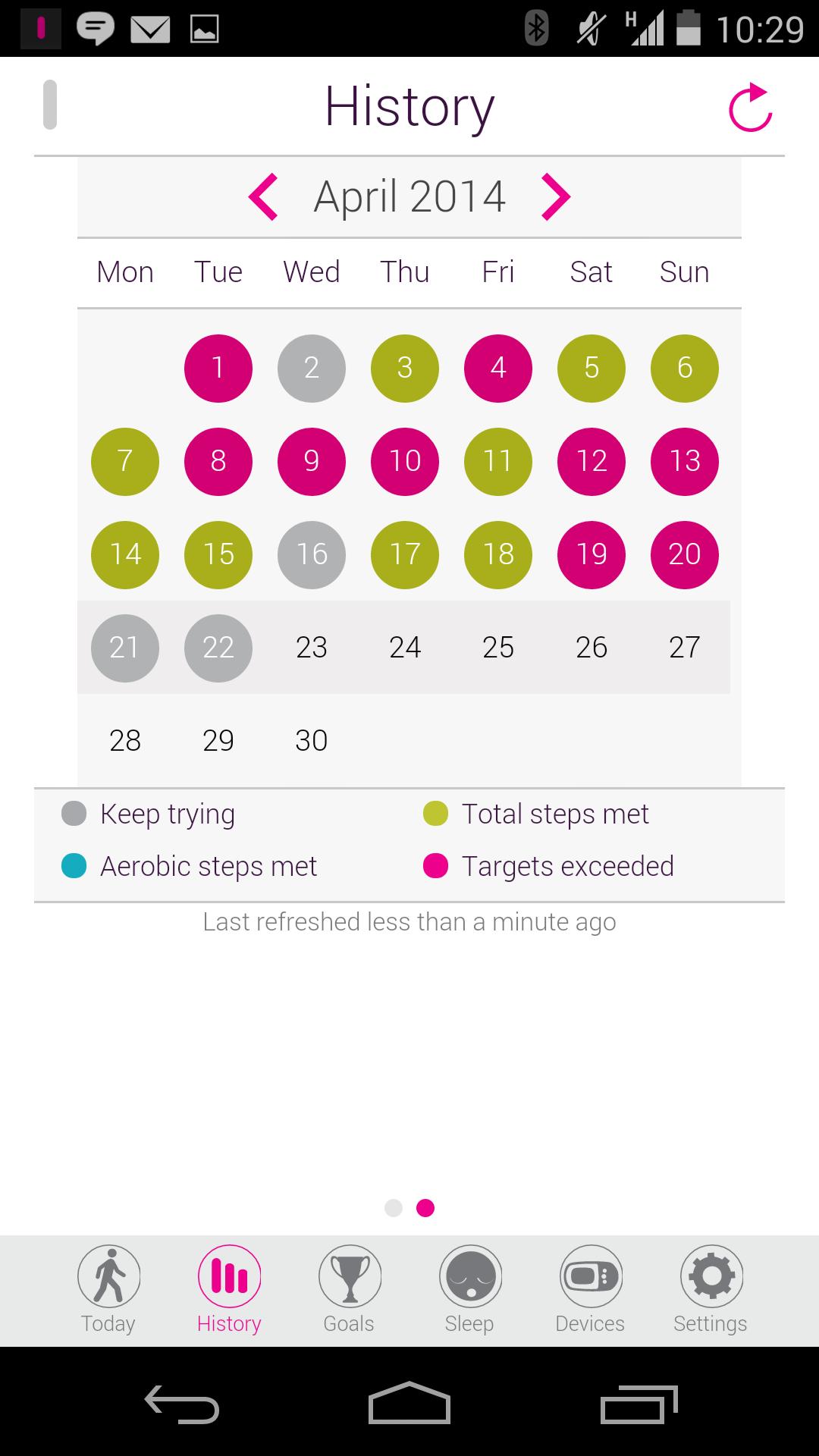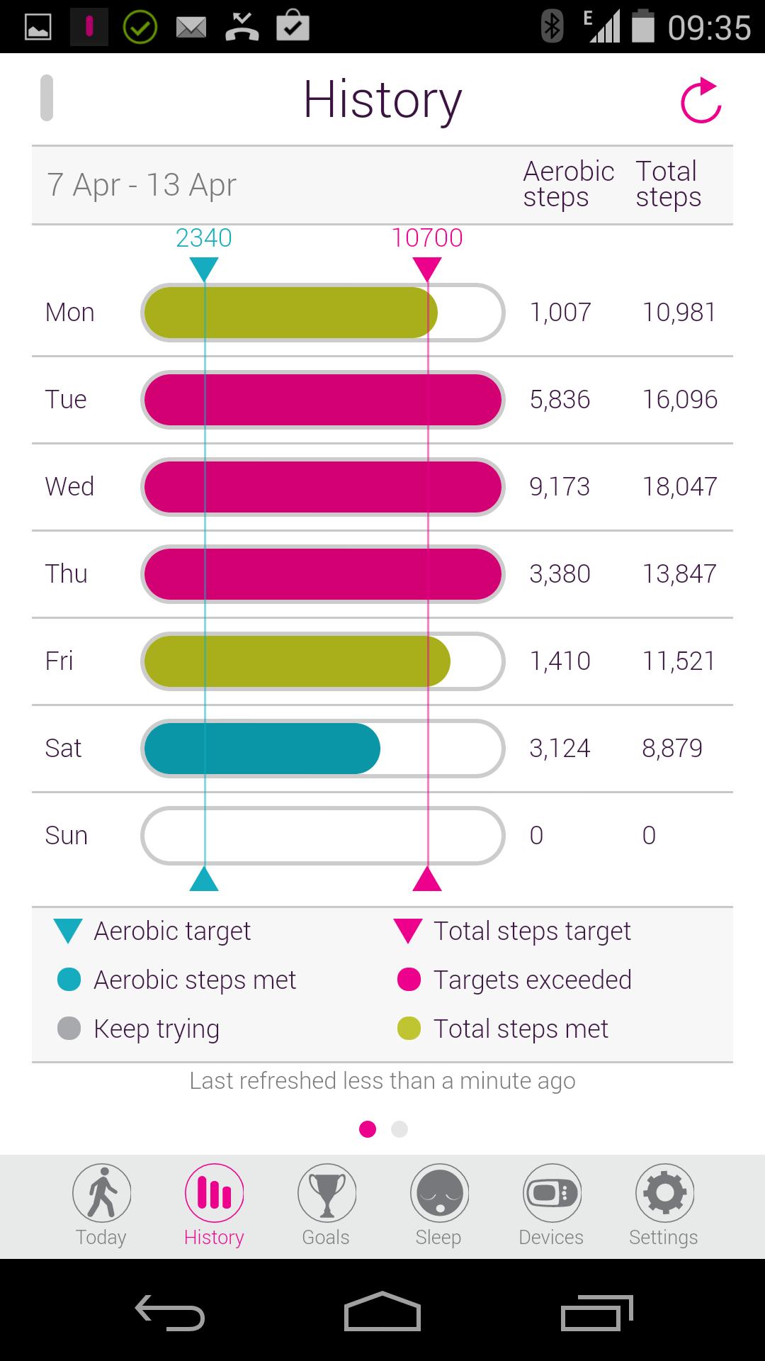 • View your total steps, aerobic steps and more, thanks to the simplistic bar graphs on screen.