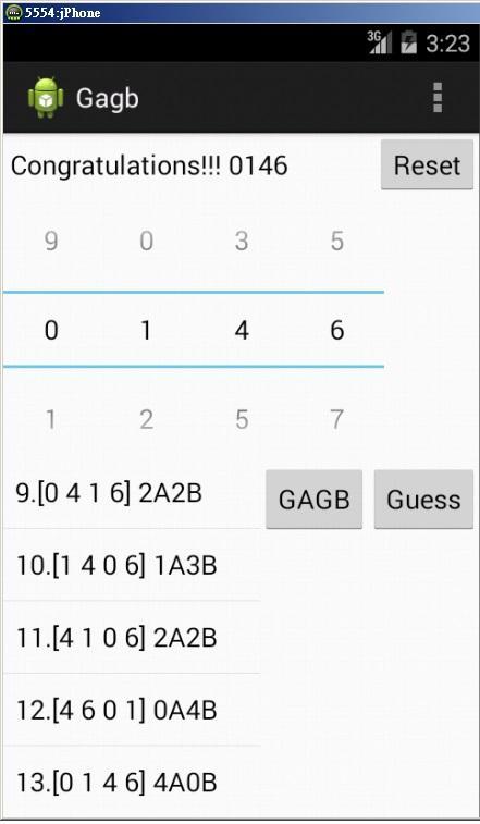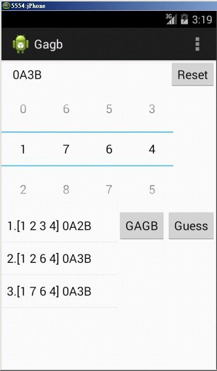Bulls & Cows , Game of Guess 4 Numbers, si le bon numéro, mais le mauvais emplacement, pour obtenir un indice "1b", si le bon numéro et le bon emplacement, pour obtenir un indice "1A".